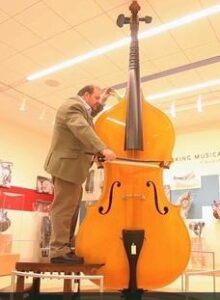 Έχει τρεις χορδές και παίζεται με ένα αναλόγου μεγέθους δοξάρι, ενώ η χαμηλότερη νότα του, ένα ντο στα 16 hertz, βρίσκεται ακριβώς κάτω από το όριο που μπορεί να ακούσει το ανθρώπινο αυτί (συνήθως τα 20 hertz). Εξαιτίας του τεραστίου μεγέθους του μπορεί να παιχτεί είτε από δύο άτομα, με το ένα να δουλεύει το δοξάρι και το άλλο να πατά τις χορδές πάνω στο μπράτσο, είτε από έναν μουσικό, ανεβασμένο σε βάθρο, που με το δεξί κρατά το δοξάρι και με το αριστερό χειρίζεται έναν μηχανισμό με μοχλούς, μέσω των οποίων πιέζονται οι χορδές πάνω σε διαμορφωμένα τάστα.